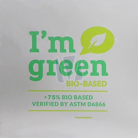 Biobased wikkelfolie voor het insealen van uw goederen. De bio wikkelfolie bestaat voor meer dan 75% uit natuurlijk suikerriet. De biobased wikkelfolie is repeterend bedrukt met het bekende I am Green logo. Deze biobased wikkelfolie is van vergelijkbare kwaliteit als reguliere wikkelfolie maar zorgt voor een fikse vermindering van fossiele grondstoffen.